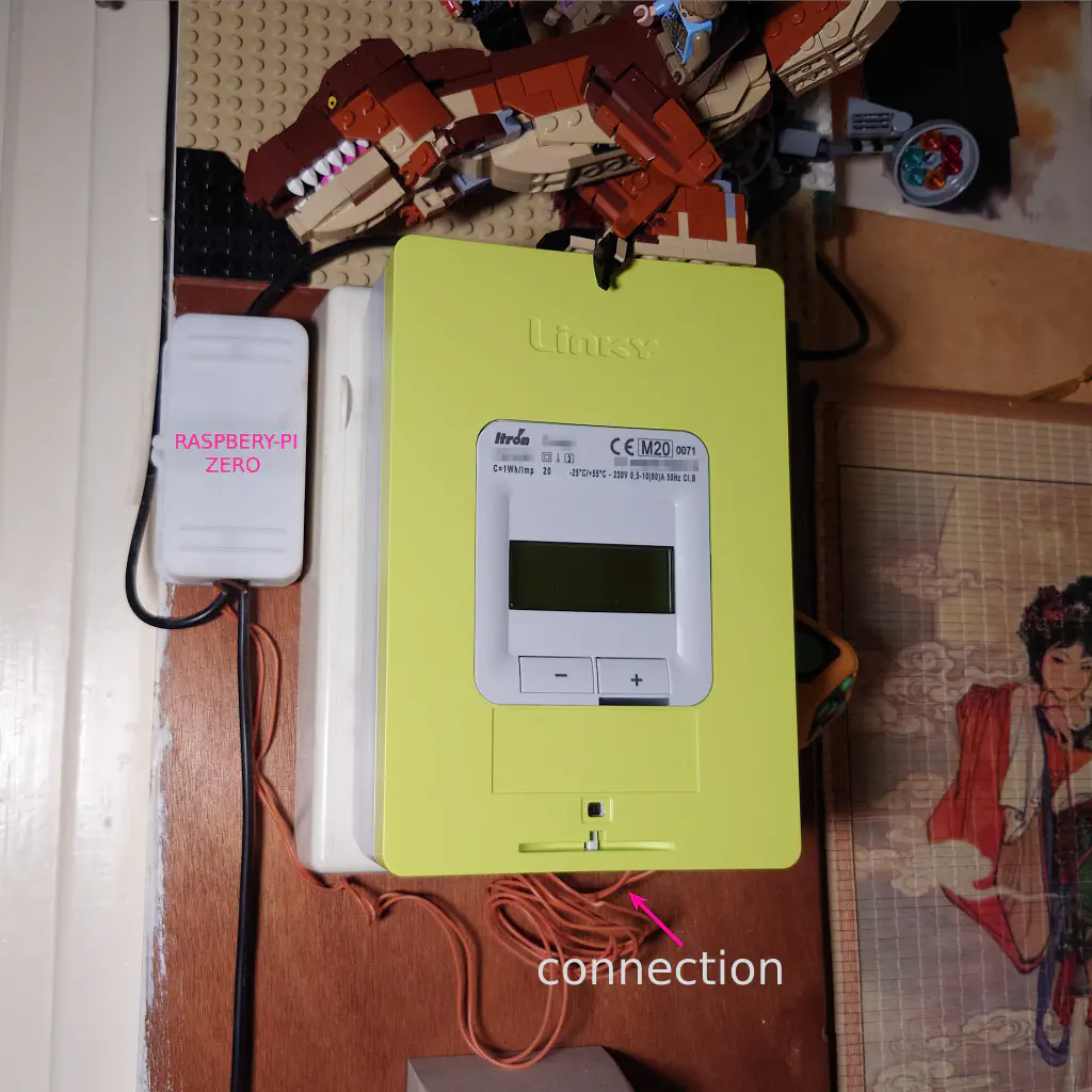 Depuis 2018, j’ai un raspbery-pi accrocher à coter de mon compteur EDF. En suivant quelques tutoriels sur le net, je les ai connectés de façon à pouvoir suivre en temps réel ma consommation électrique.